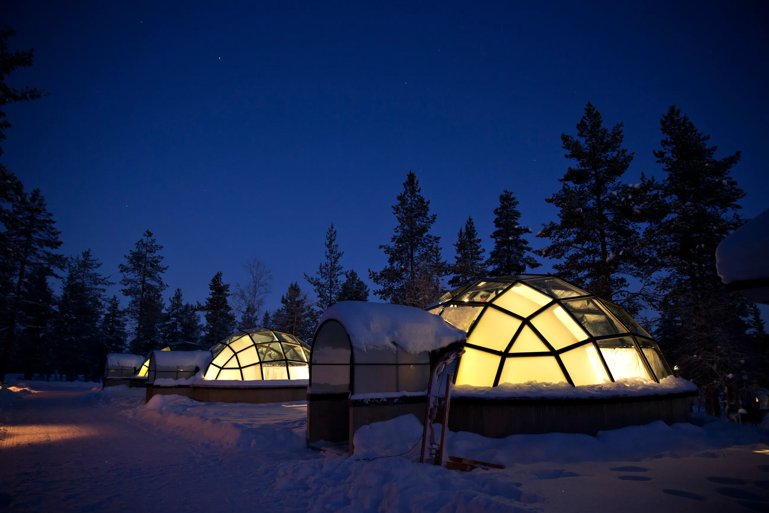 Glass igloos are usually located in northern regions of Finland, particularly within Lapland, where the Arctic environment offers long winter nights and clear skies ideal for sky observation. These accommodations are often surrounded by forests, snowfields, and remote wilderness areas, creating an immersive environment focused on nature observation and Arctic exploration.